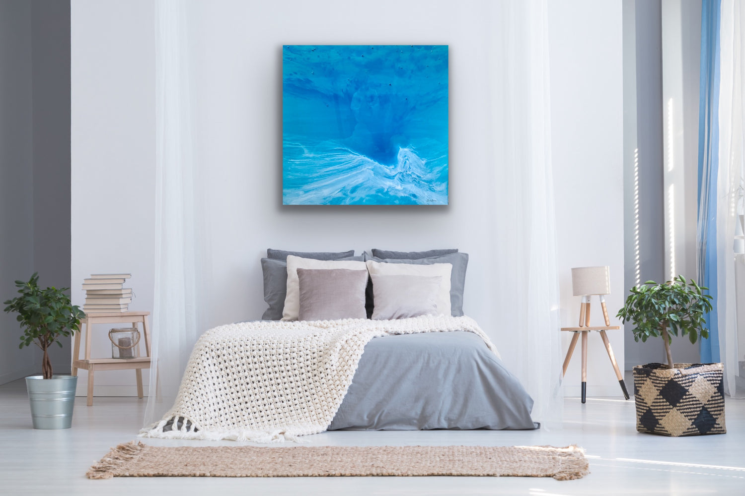 The result is a very abstract, emotional and fluid scene, leaving ample room for interpretation and imagination. There is a feeling of motion, space and freedom in every bespoke artwork.