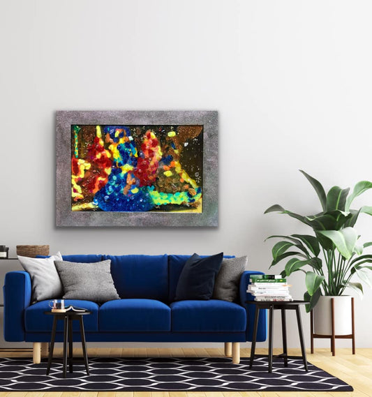 Bula Barua's original artworks are luxurious and magnificent. Bula uses luxury materials, such as artist blown glass, 24-karat gold leaf, genuine silver leaf, Swarovski crystals, precious gems, acrylics, crushed minerals, iridescent glitters and resin. Each masterpiece is handmade to perfection with many layers of pigment. One artwork can take up to 3 months to create because of the meticulous layers and drying time. Bula's artworks add luxury and elegance to any living or working space. Bula never creates reproductions of these original masterpieces, so each one is one of a kind.