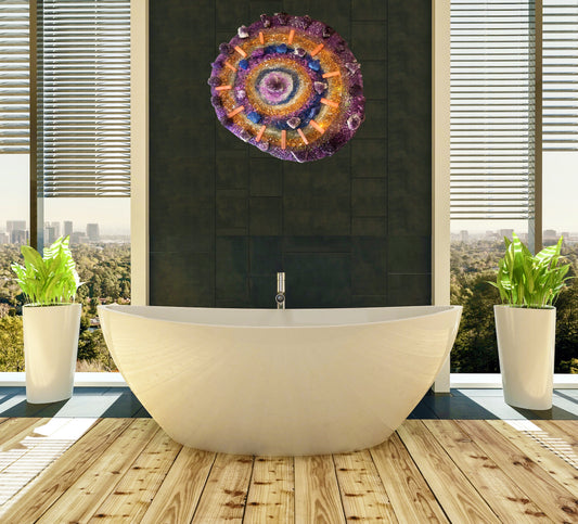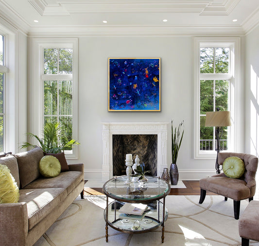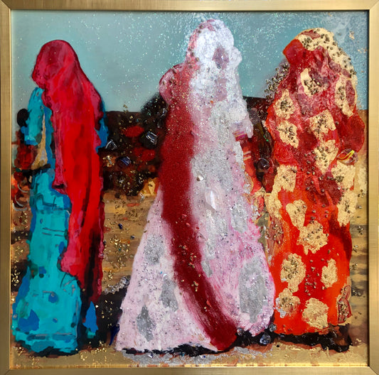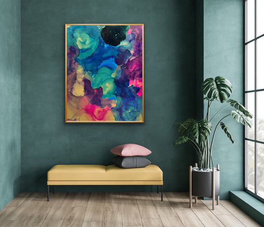 Bula Barua's original artworks are luxurious and magnificent. Bula uses luxury materials, such as artist blown glass, 24-karat gold leaf, genuine silver leaf, Swarovski crystals, precious gems, acrylics, crushed minerals, iridescent glitters and resin. Each masterpiece is handmade to perfection with many layers of pigment. One artwork can take up to 3 months to create because of the meticulous layers and drying time. Bula's artworks add luxury and elegance to any living or working space. Bula never creates reproductions of these original masterpieces, so each one is one of a kind.