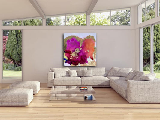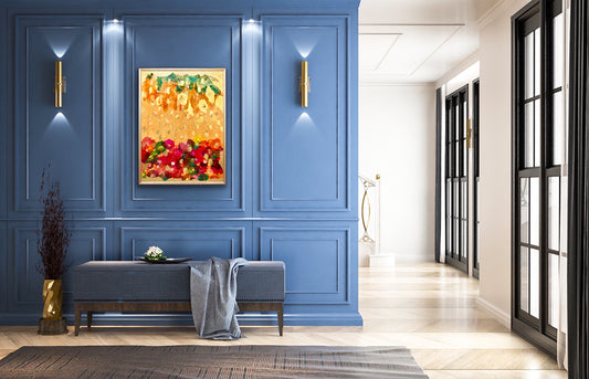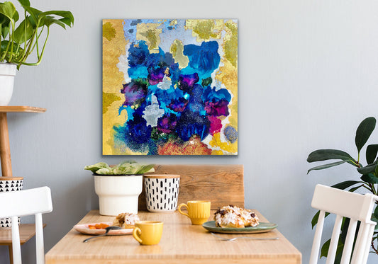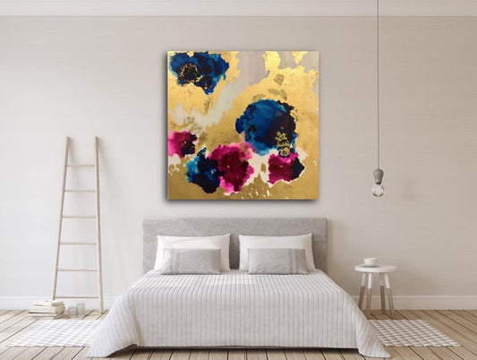 Bula Barua's original artworks are luxurious and magnificent. Bula uses luxury materials, such as artist blown glass, 24-karat gold leaf, genuine silver leaf, Swarovski crystals, precious gems, acrylics, crushed minerals, iridescent glitters and resin. Each masterpiece is handmade to perfection with many layers of pigment. One artwork can take up to 3 months to create because of the meticulous layers and drying time. Bula's artworks add luxury and elegance to any living or working space. Bula never creates reproductions of these original masterpieces, so each one is one of a kind.